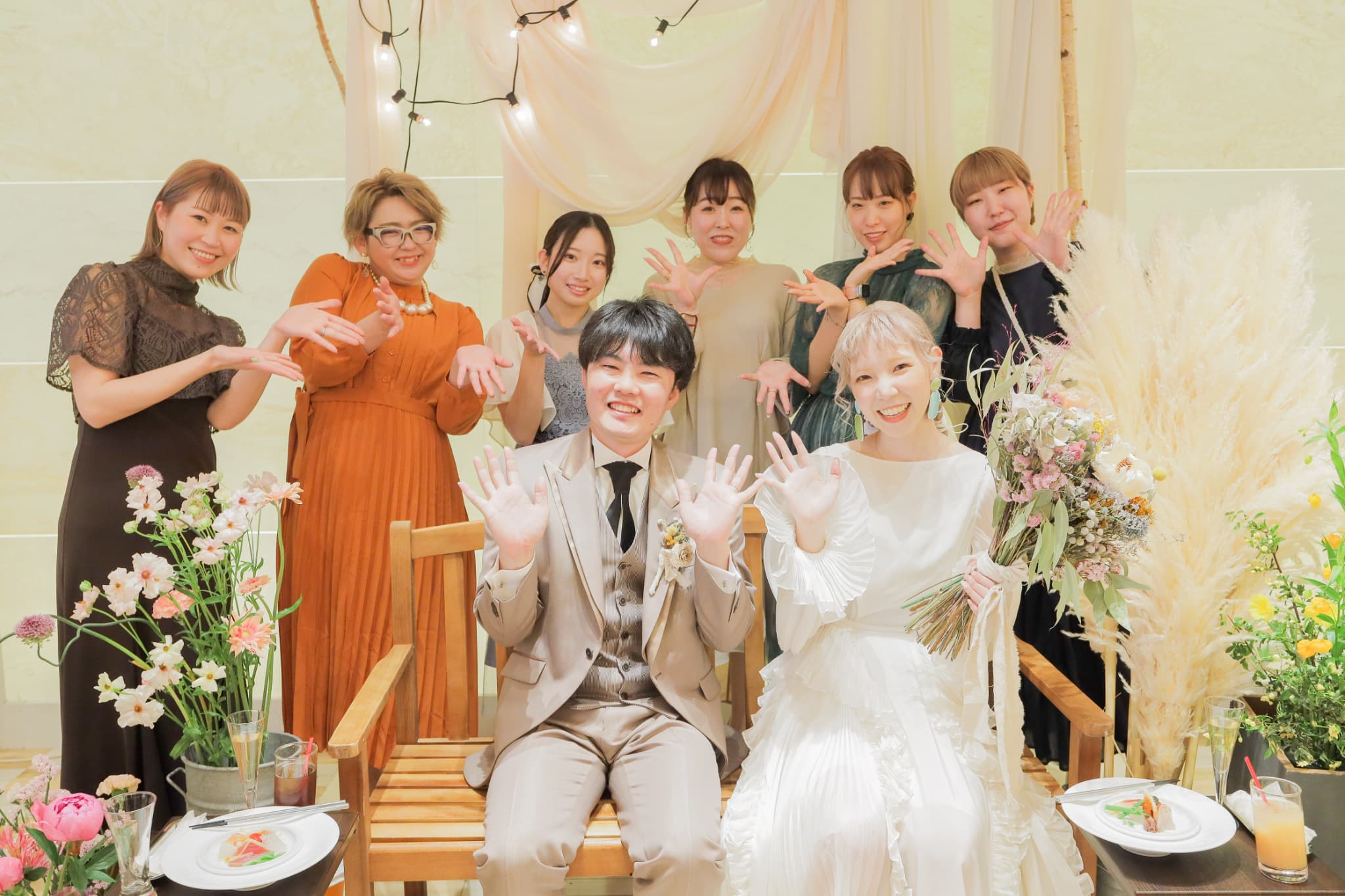 ゲストからのバブルシャワーで幸せに包まれたおふたり