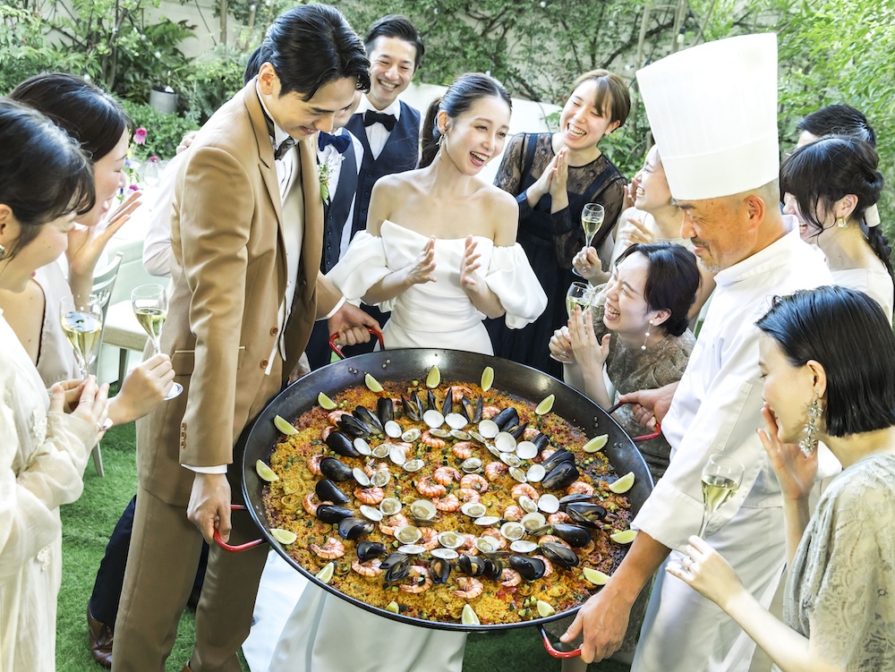 こんなのはじめて!と歓声が沸き、テーブルの会話が弾むようなおもてなしもおすすめです。ゲストの目の前でシェフがお料理を仕上げるパフォーマンスはライブ感いっぱい。他に演出や余興がなくとも、ゲストとのアットホームな時間を作ります。