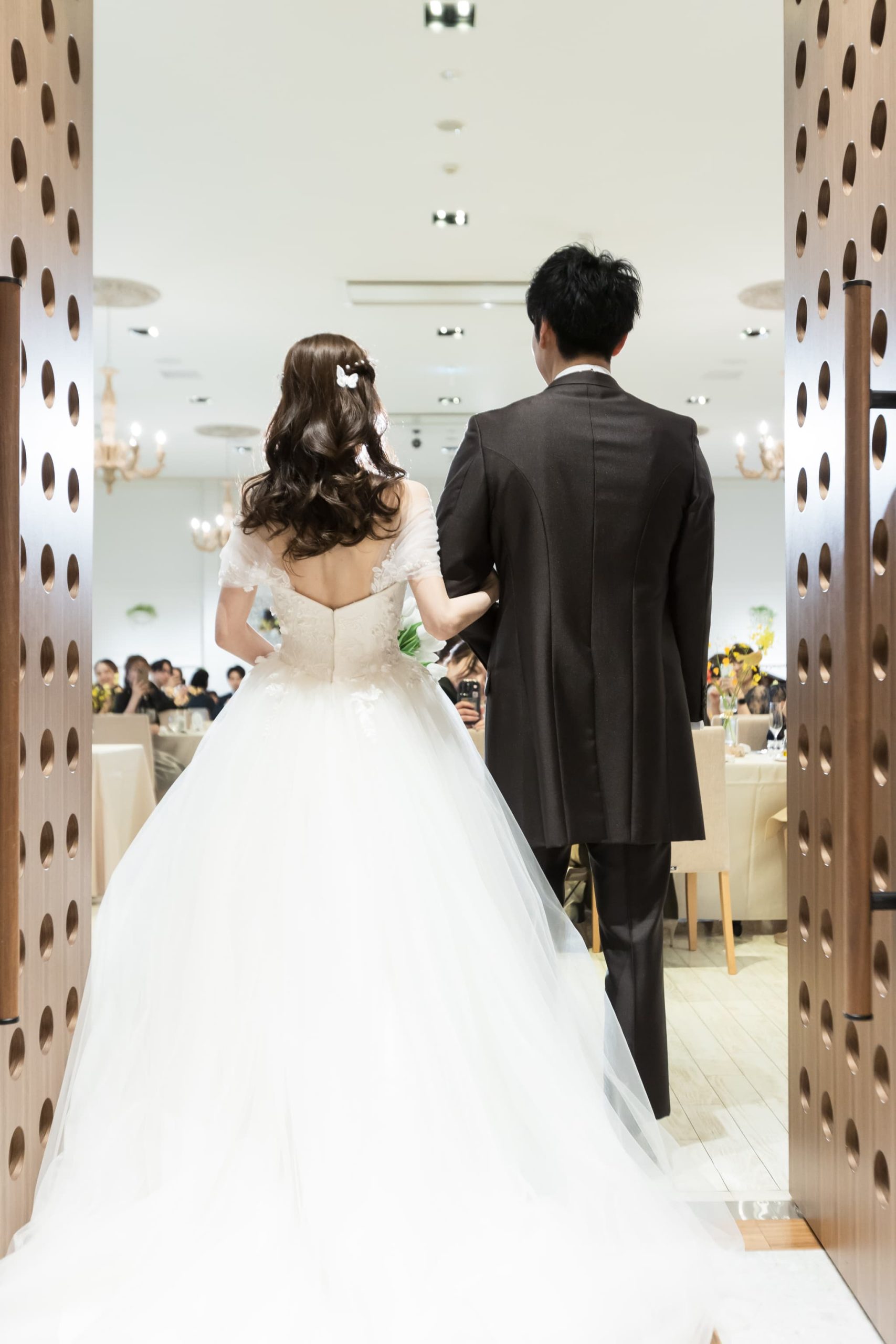 ご新婦さまがご新郎さまの背後から