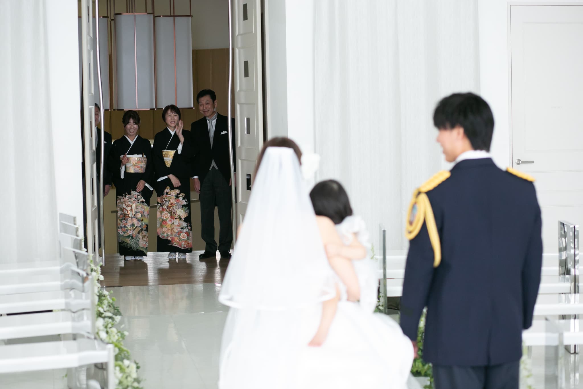 ゆっくりとご新婦様とお子様が歩み寄ります
