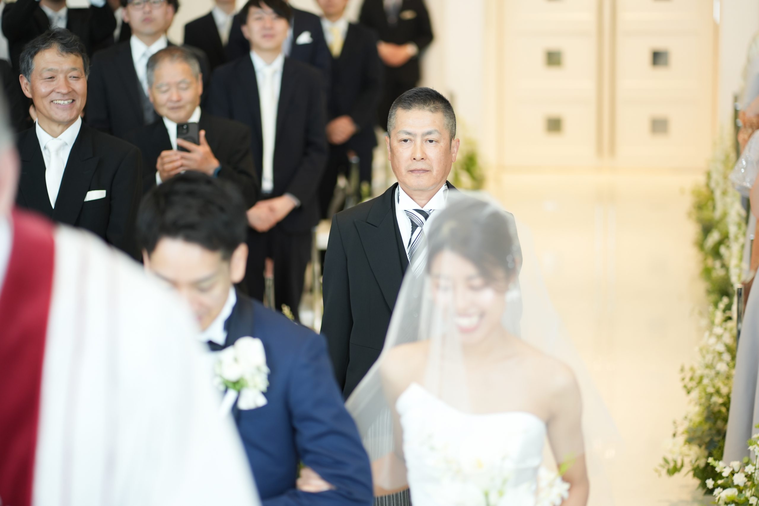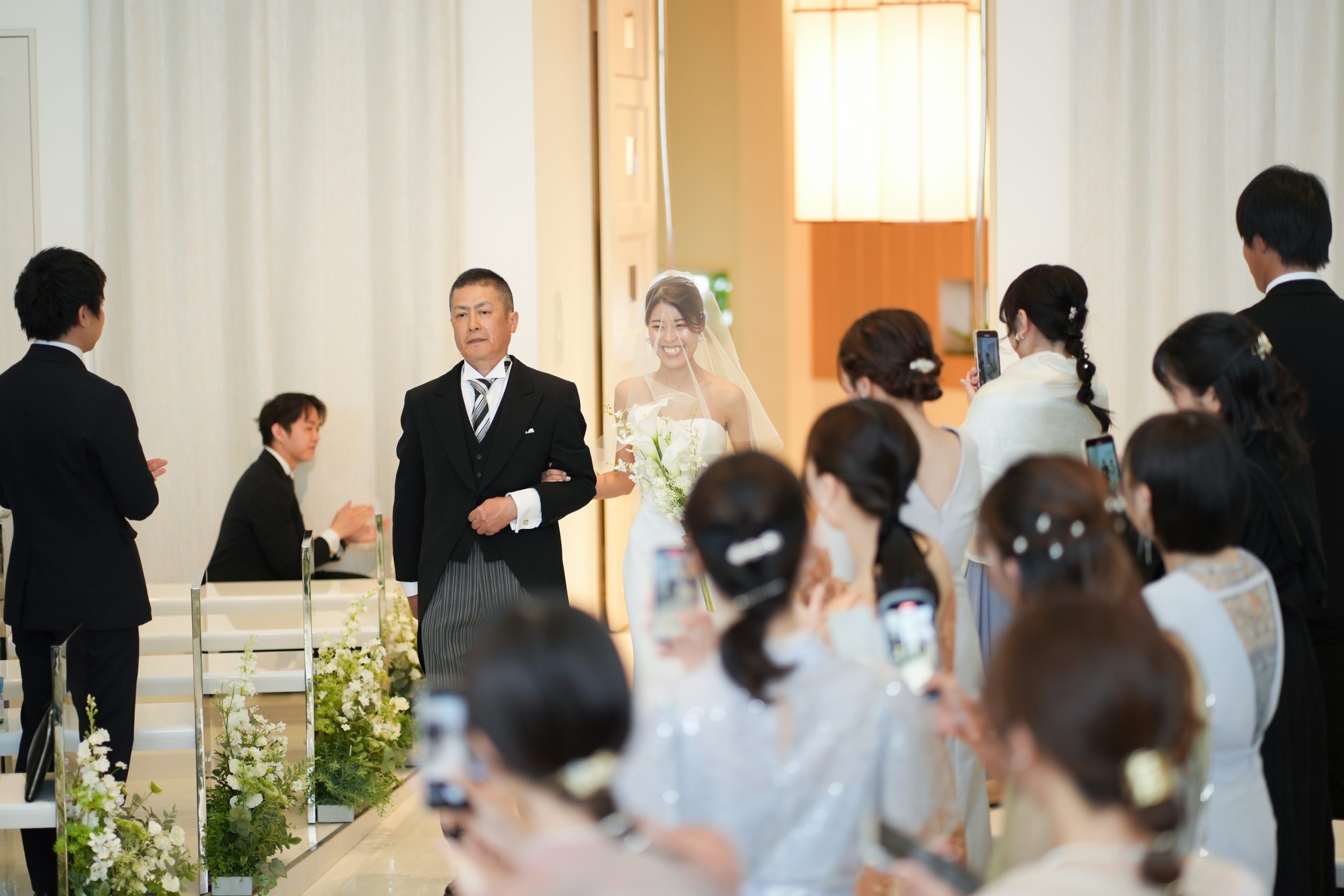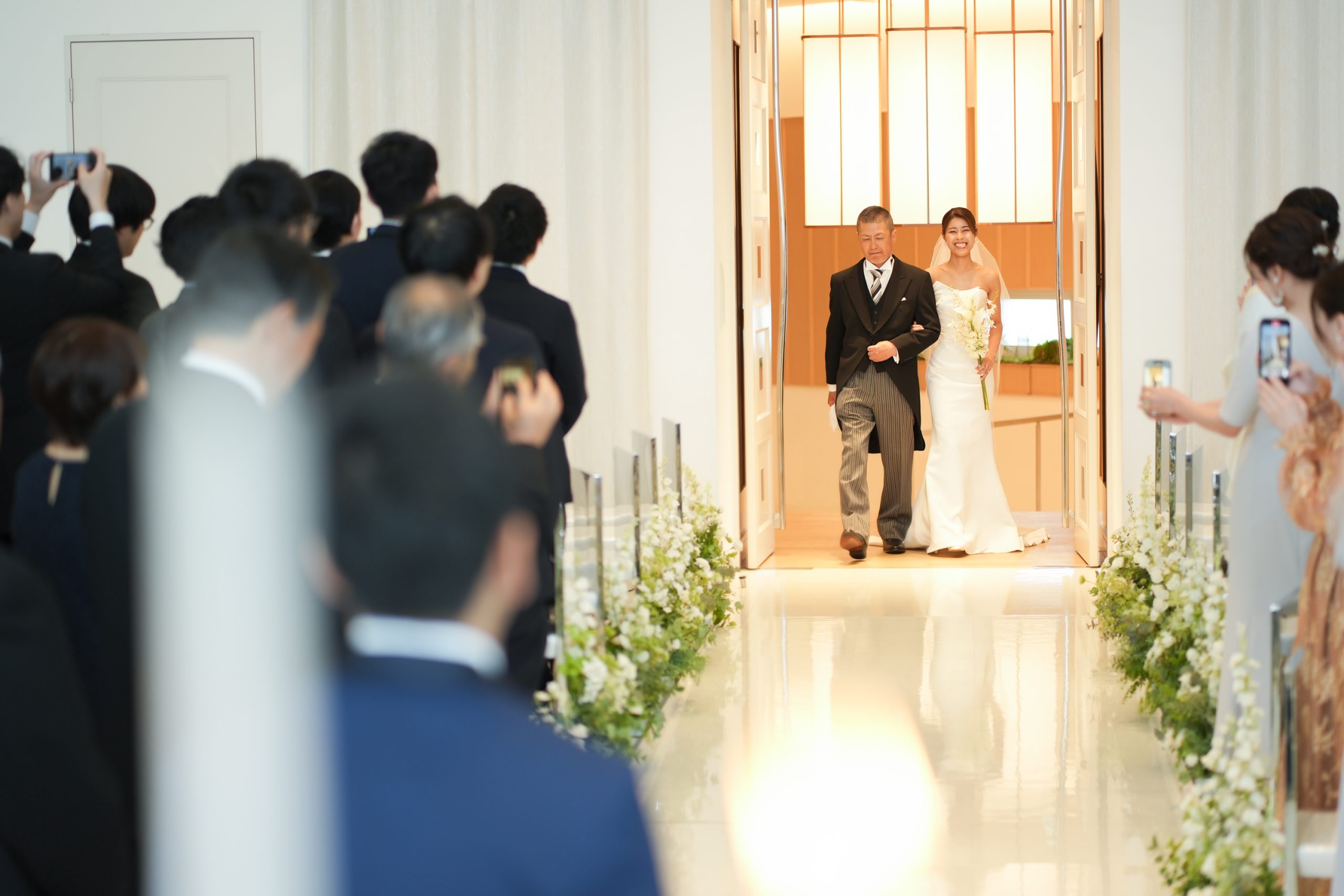 扉が開き新婦様はお父様と一歩ずつ歩まれます