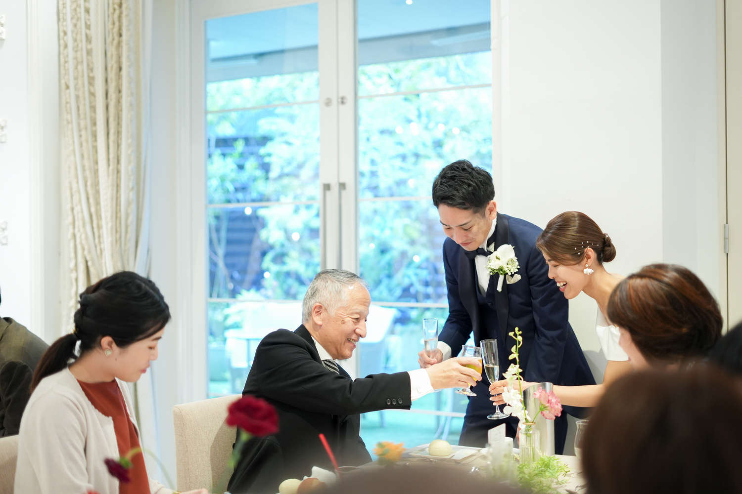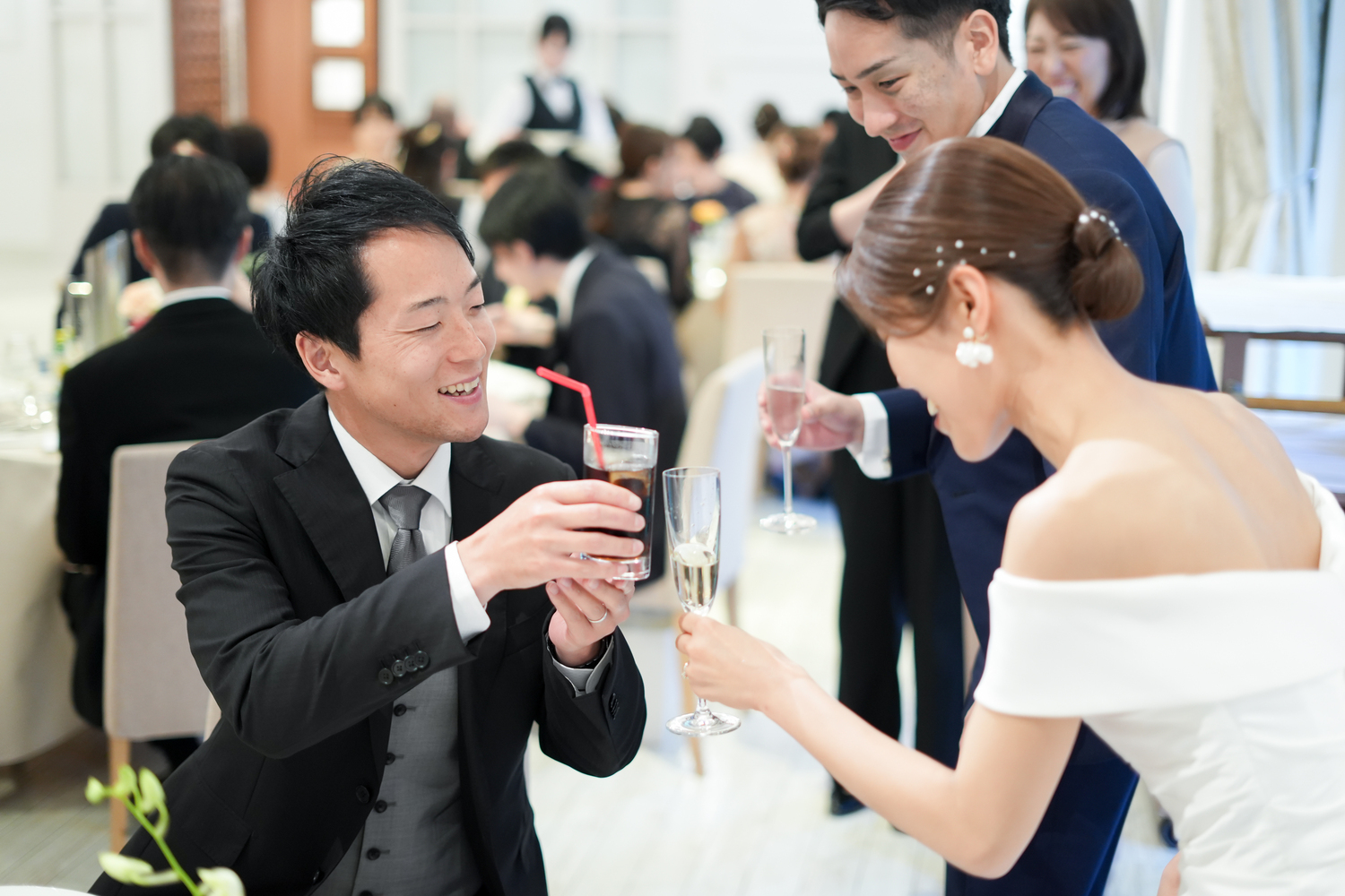 お二人がグラスを持ってゲストテーブルへとご挨拶へ行く