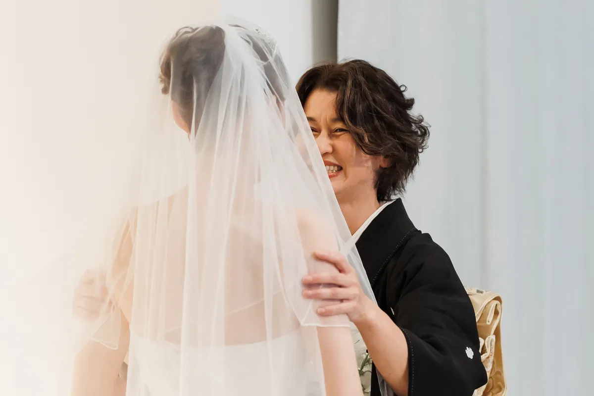 笑顔でベールダウンをされたお母様