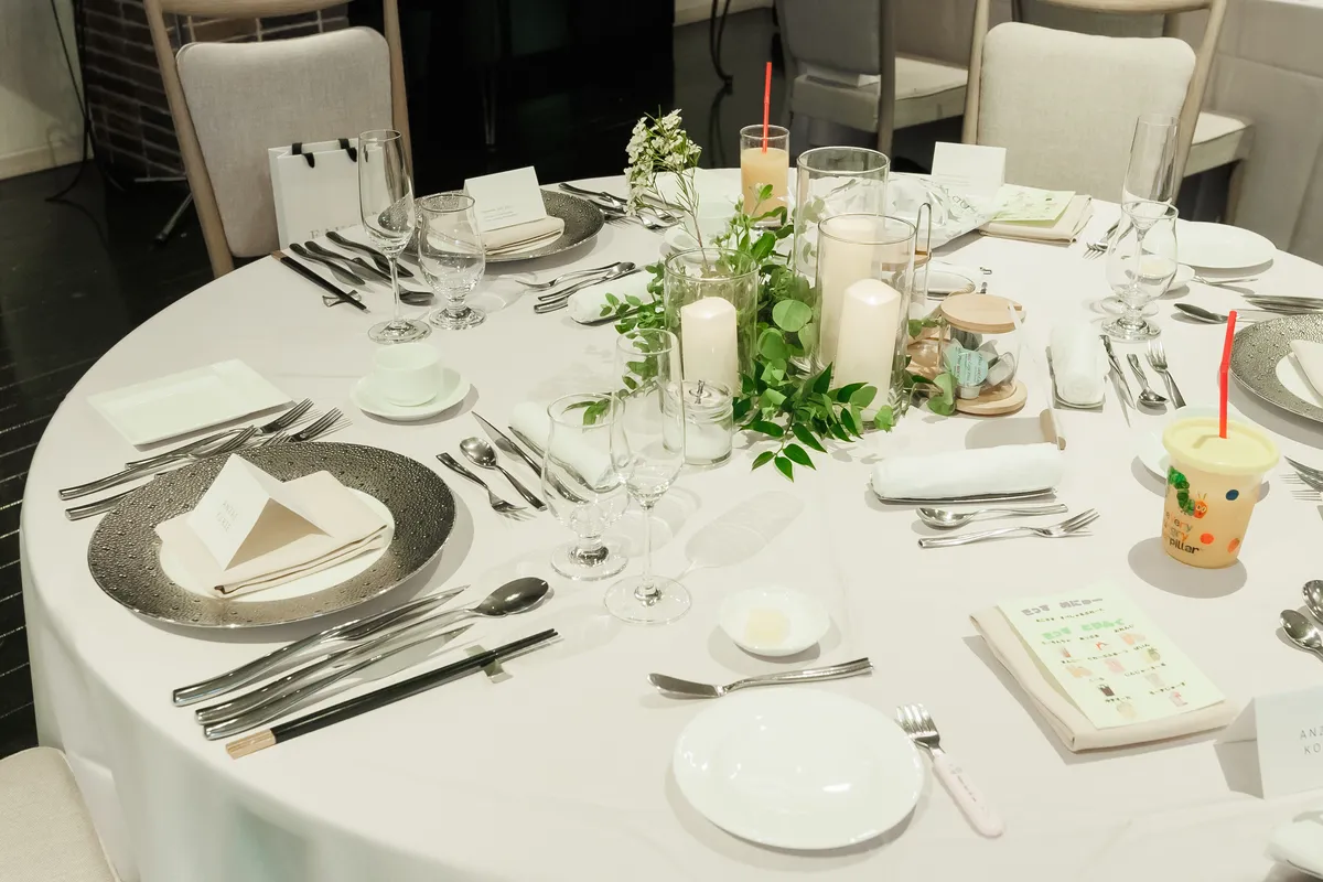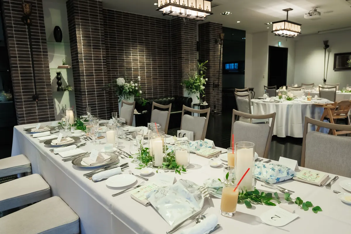 爽やかな白とグリーンで揃えられた会場装花